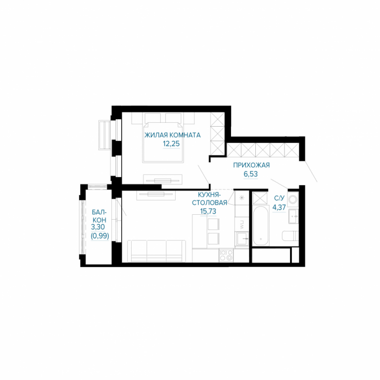 Однокомнатная квартира №298
