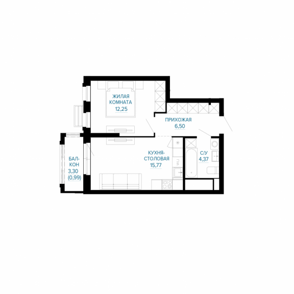 Однокомнатная квартира №354